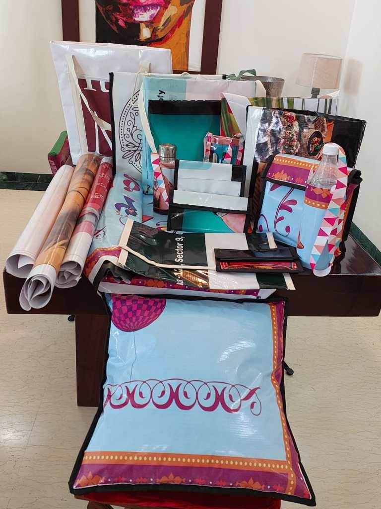 Experience the perfect blend of style and sustainability with our exclusive range of bags and accessories, all crafted from 100% recycled flex banners. Each product is one-of-a-kind, reflecting a commitment to environmental responsibility and innovative design. Our collection includes tote bags, laptop covers, phone cases, and more—each made from carefully repurposed materials, ensuring durability and a unique aesthetic.